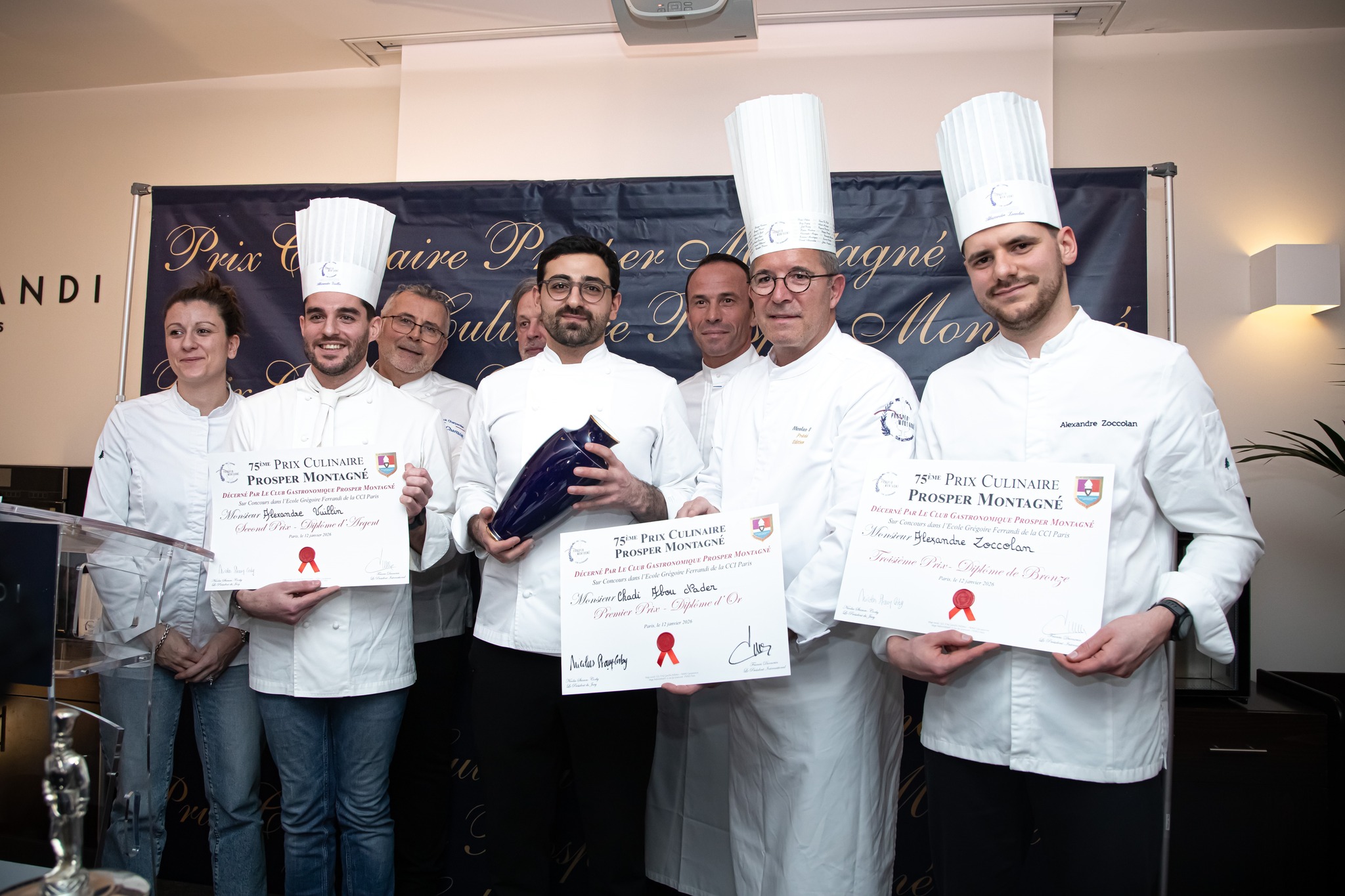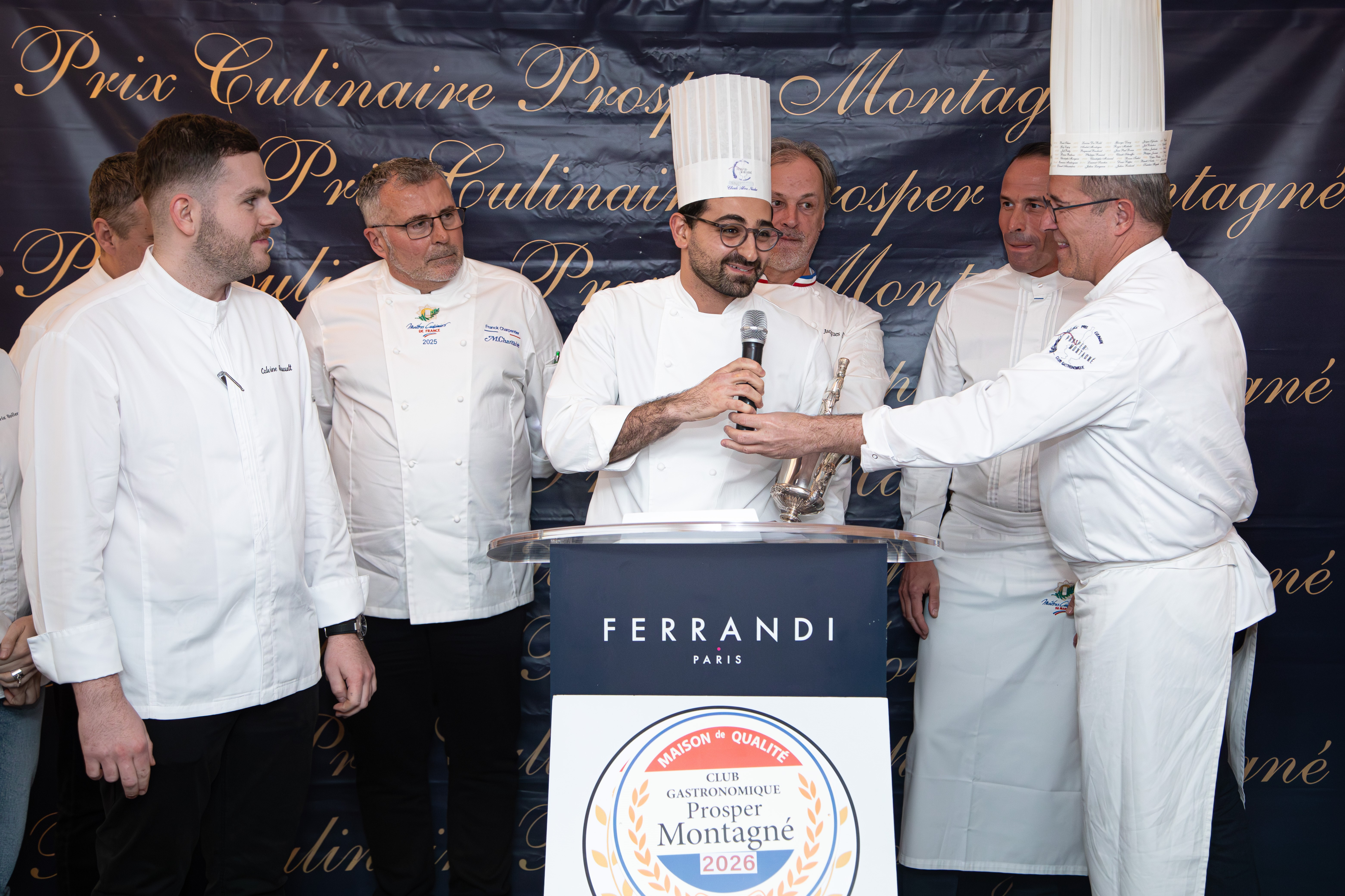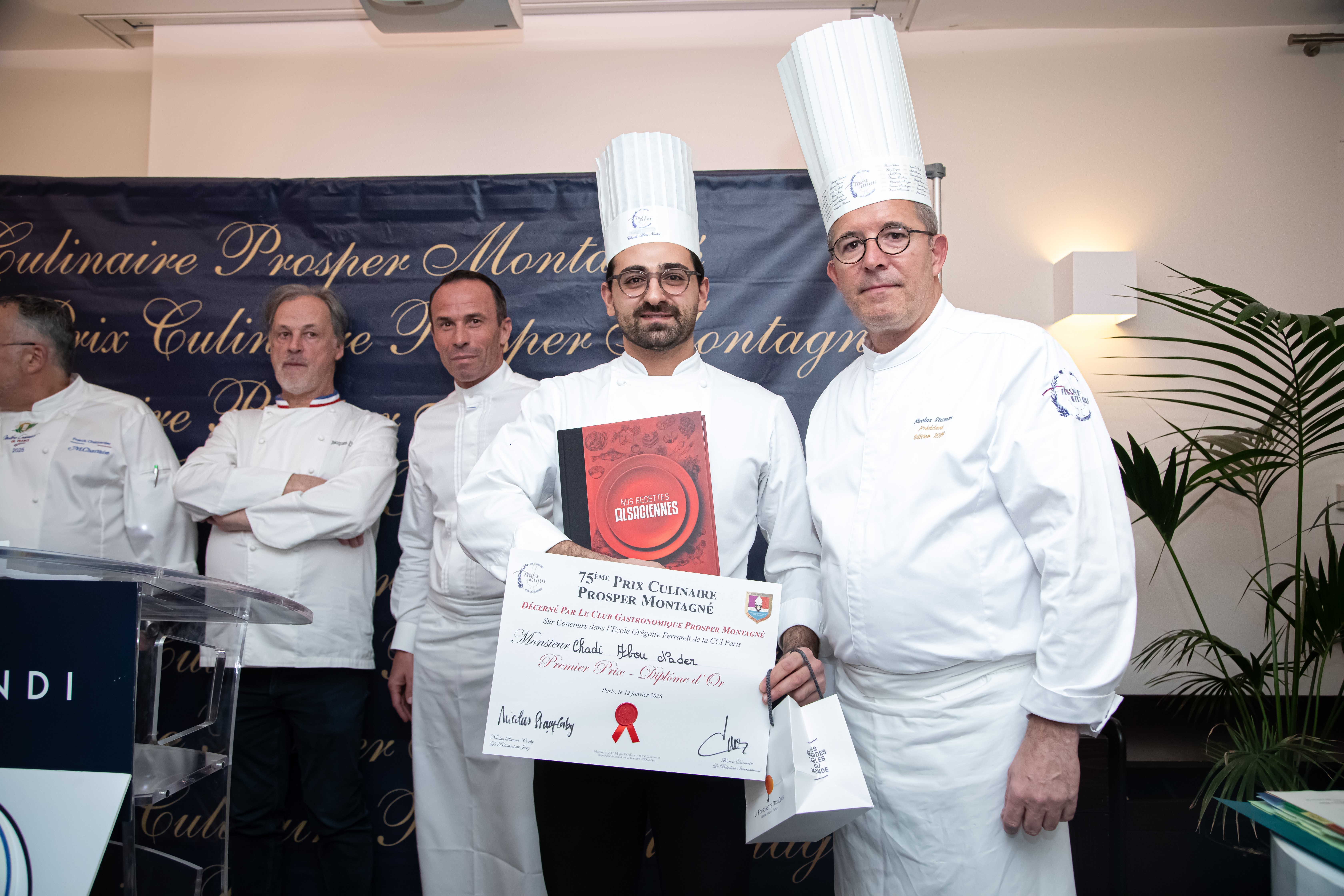 Monsieur Nicolas STAMM-CORBY, Monsieur Francis DURNERIN, Monsieur Benoit NICOLAS, Monsieur Denis RIPPA et Monsieur Christophe MOISAND s’étant réunis pour étudier les dossiers des participants, nous sommes heureux de vous indiquer les noms des finalistes du Prix Culinaire Prosper MONTAGNE 2025 :